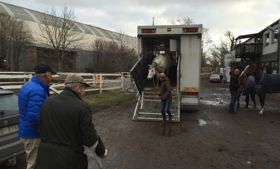 jag måste skriva om vad som hände igår! KG, jag och Pelle satt och fikade när Kalle fick samtal, la på och sa: vill du köpa en ponny? Den är här om en kvart! Vad menar du? Undrade jag. Jättefin! Blev svaret. Typiskt Kalle sa Pelle.(Kalle hade köpt ponnyn för att den kommit fram till honom och tytt sig till han när han var hos en hästhandlare!) Sedan kom lastbilen in på gårdsplanen och Kalle drog ut, Pelle skakade på huvudet och sa att: han är sig lik! plockade upp kryckorna och gick efter. Jag hängde på och fick bilden som är grym. I det ögonblicket som jag tog bilden stog båda och tittade, och Pelle frågade: vad gav du för den? Kalle böjde sig över och viskade.. Pelle nickade och sa… Rätt!